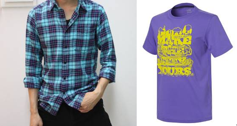 체크무늬의 남방 혹은 프린팅이 화려한 티셔츠 등으로