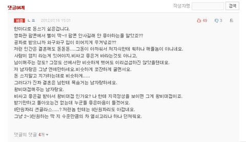 판녀 너네도 남자가 '데이트 비용이나 선물비용 아까워요~'라고 글 올리면