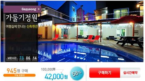 팬션 전문 소셜커머스로 상당히 부담 될 수 있는 여름 철 숙박비 부담을 확 줄여 줍니다.