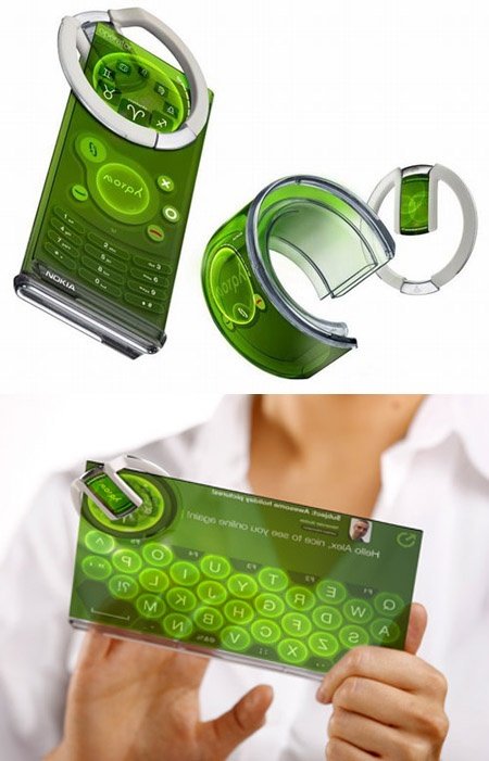 먼저 1차적으로 이 플렉시블 디스플레이를 채용한 곡선현 디자인의 스마트폰이 나온다는 건 분명하죠. 사실 이제까지 곡선형 스마트폰이 나온다 나온다 하면서 막상 뚜껑을 열어보면 그냥 크게 획기적일 것 없는 디자인이었죠. 아직은 회로와 배터리의 문제 때문에 전체가 구부러지기 힘들다고 하지만 이미 노키아에서는 컨셉트 휴대폰인 모프를 통해 이런 게 실제 가능하다는 사실을 입증한 바 있습니다.