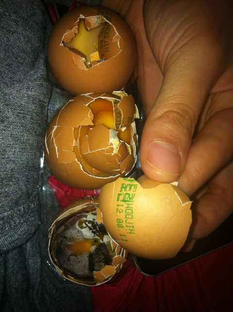 집에온후 언니가 라면을 끓여왔고 계란을 깐순간 썩은냄새와 곰팡이가 눈에보였습니다.