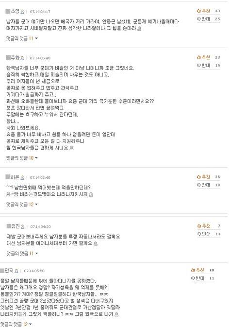 * 헌법에는 대한민국민은 국방의무를 갖는다라고 명시되어 있으나 여성은 전혀 하는 것이 없음. 심지어 독일 등의 타국가의 여성들은 세금을 더 내고 있으나 한국여성들은 이마저 하고있지 않음