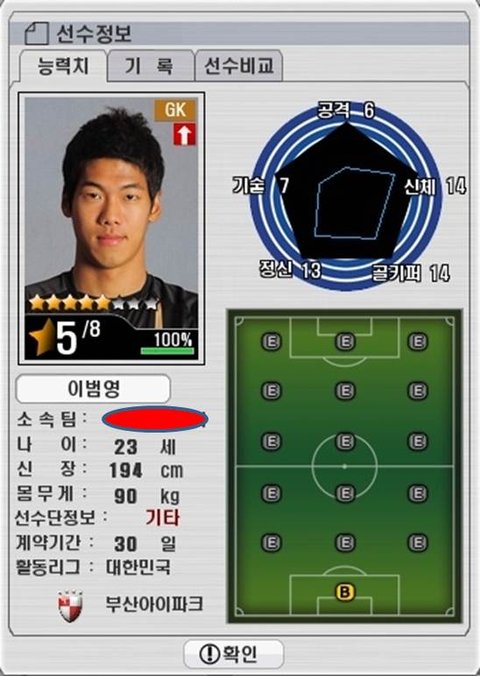신체 능력과 골키퍼가 14나 되네요ㅋㅋㅋ