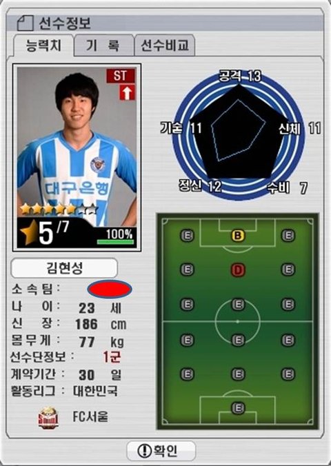 그런데 선수카드에서는 아직 2010년에 대구로 임대됐을 때 시절의 사진이네요.ㅠㅠ