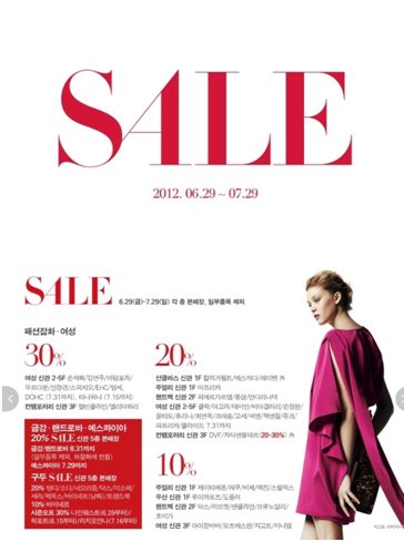 여성복, 핸드백, 제화, 스포츠의류 등 10~30% 할인 판매