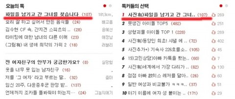 톡커들의 선택에서 1위를 수상하였네요 ㅊㅋㅊㅋㅊㅋㅊㅋ