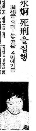납치된지 1년만에 강변야산에서 이윤상군의 시신발견.