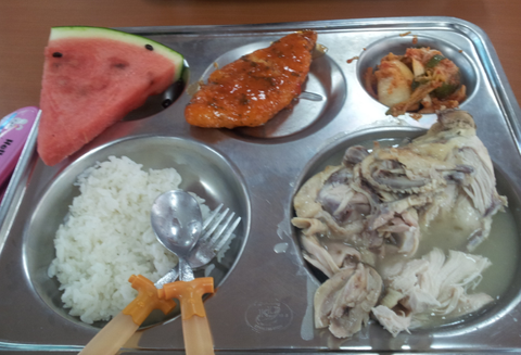 엊그제 초복에 나왔던 삼계탕, 수박, 생선까스 ㅋㅋㅋ