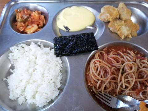 저희학교는 수저는 집에서 가져오는 형식이고 저 포크와 숟가락은 제가 직접구입한거랍니다 ㅎㅎ