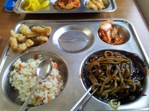 탕수육, 볶음밥, 짜장면, 김치, 단무지