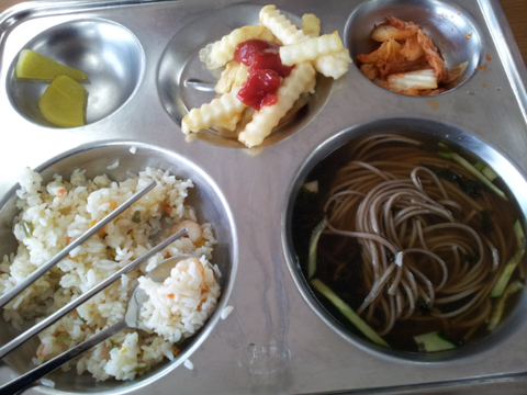 감자튀김, 김치. 단무지. 볶음밥. 냉모밀국수 ![]()