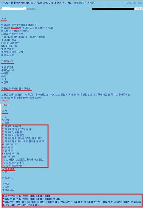 특히 인피니트와 수지 카톡이나 폰번호 거래 활성화 돼있는듯..여기 진짜 신고해야돼ㅡㅡ