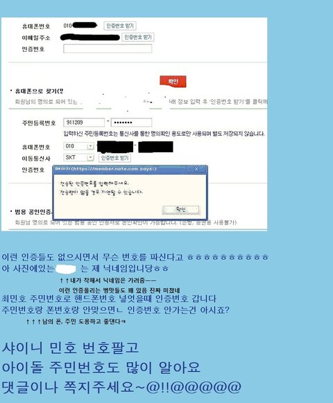 +민호 주민과 폰번호로 인증한 어떤 미친놈추가 But 저게 진짜 민호 주번, 폰번호일지는 저도 몰라요ㅠ
