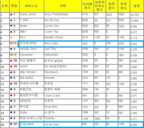 장우영 47위 , 조권 100위안에 없음 차트아웃