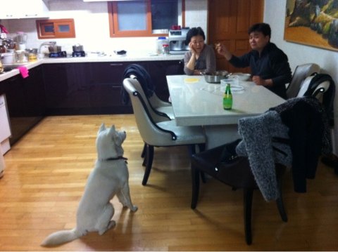 밥먹을때도 들어옴. ㅋㅋㅋㅋㅋㅋㅋㅋ내가 훈련시켰는데 뭔가 원하는게있으면 앉으라고 훈련시킴.