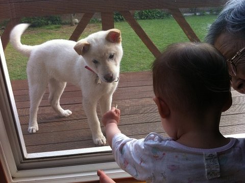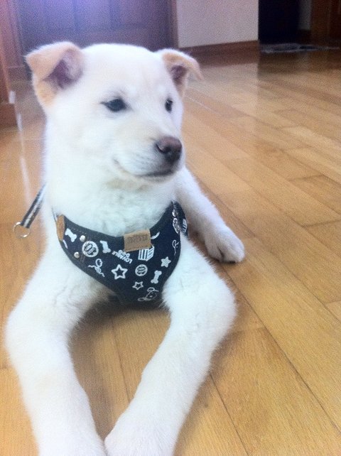 전원주택으로 이사가는 것이 결정났을즈음, 아빠가 예전부터 백구키워보는게 소원이었다고 개를 키우자고 했음. 개키우는걸 한번도 상상해본적이 없어서, 키울수있을까 고민했지만.. 고민고민끝에 신중히 가족회의도하고 서로 할일도 약속(ㅋㅋ)하고 다짐해서 강아지한마리를 데리고 옴!