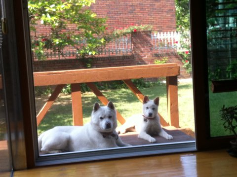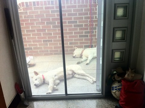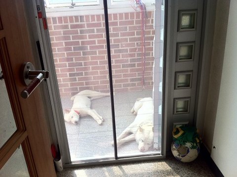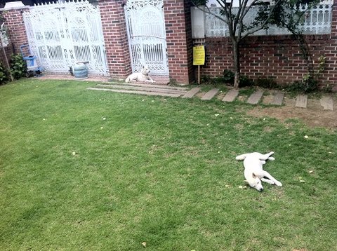 이렇게 마당에서 가비는 대문앞에 두비는 저렇게 잘 자빠져서 잠이듬.