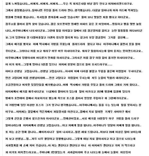 조금진정하고 여지껏 있었던일을 애기했습니다..어제 택시에서 가방을 주었고 돌려 드리며 그대로 가져 왔다고..