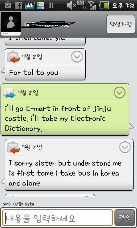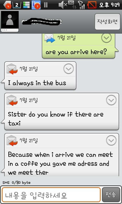 그런데 제 친구가 교회에 다녀서 2~3주 전쯤에 하루 앞당길 수 없냐고 물으니 일정을 바꿔야한다고 해서 제가 괜찮다고 그럼 혼자 나가겠다고 했습니다. 그랬더니 불란서가 자기 일정을 바꿀테니 그럼 토,일요일 모두 볼 수 있냐고 해서 저는 바로 그러마 했습니다. 그리고 불란서가 한국에 왔을 때 곤란한 일 있으면 전화할 곳은 있어야 하니까 고민고민 끝에 제 폰 번호도 가르쳐줬습니다. 전화도 몇번 왔어서 통화도 짧지만 했지요. 영어인지 한국말인지 모르겠더라구요 ㅡㅡ;; 발음이;;;