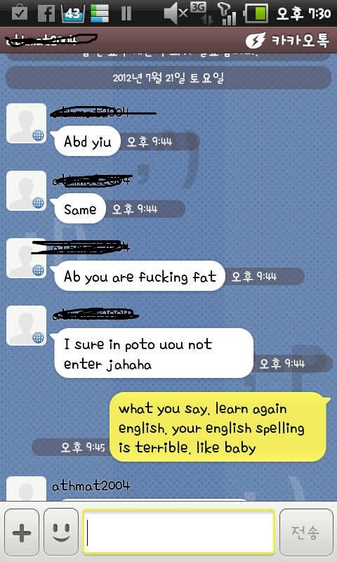 제가 그놈 배려해서 영어로 곱게(?) 설명해주기도 짜증나서 한국어로 욕 써서 보냈습니다.