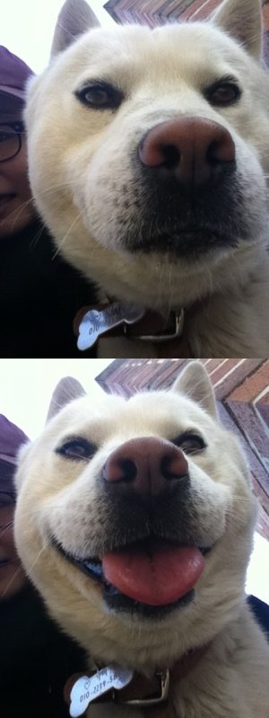 난..난 단지 사랑하는개님과 사진을 찍고싶었을뿐인데....