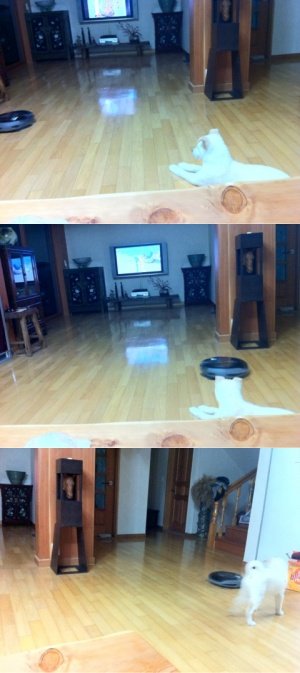 움직이니까 무서워하더니 공격하려고 막 뛰어갔음.ㅋㅋㅋㅋㅋㅋ