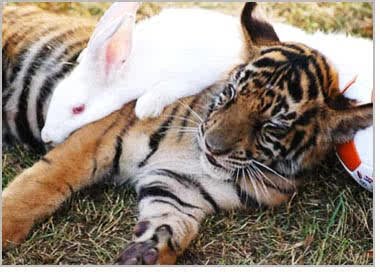 종을 뛰어넘는 우정 저 호랑이는 다크면 절대 살아있는토끼는 못먹을듯