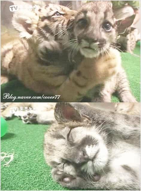 동물농장에서본 퓨마새끼ㅋㅋ사자새끼 호랑이새끼 퓨마새끼 셋이있는데 호랑이가 이 퓨마귀를