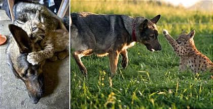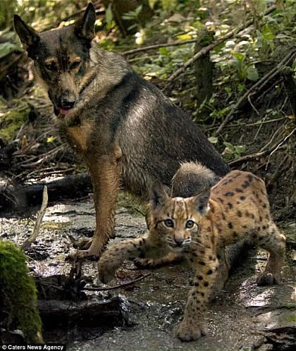 이사진은 꼭 사부님과 재자같이 뭔가 느낌이 멋있음 저 개 세퍼트?가 저 삵을 어릴때부터 돌봤다고함