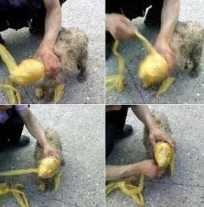 유기견인데 누가 키우다 저렇게 집 찾아오지도 못하게 하려고 테이프로 말아서 버렸다고함