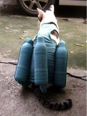 냥이가 물에 빠질까봐 수작업으로 구명조끼를 만들워줬다고함