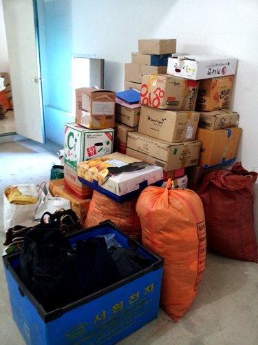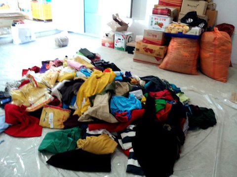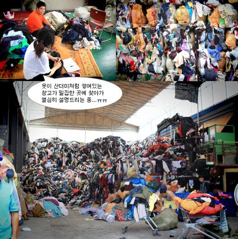 의류창고, 봉제회사, 아파트단지 수거함, 동대문일대, 구제의류 개방창고 등등 뛰어다니고, 수소문하고, 연락드리면서 지금까지 1벌의 옷이라도 더 구하기 위해서 열심히 알아 보고 있는 상황입니다.
