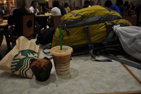 저가항공이라 기내식이 없을꺼 같아 별다방에서 커피와 머핀을 사먹음.