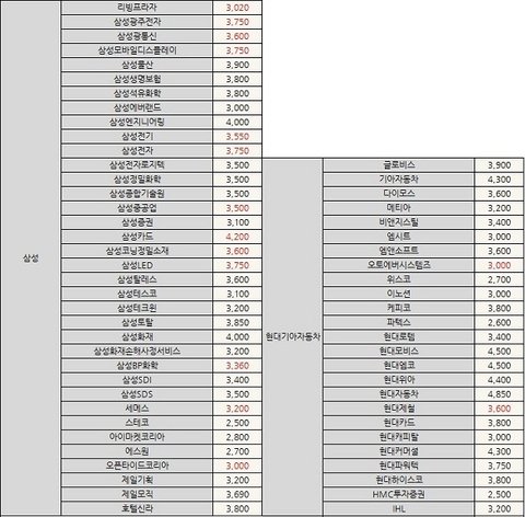 이건 한국 2대 대기업이라고 불리는 삼성, 현대기아차의 초봉들임.