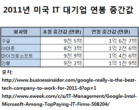 그렇게 좋은 환경에서 일하는데, 임금은 더 쎔. 특히 초봉이 엄청 쎔.