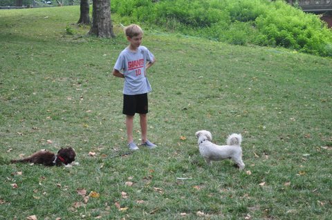 나무사이로 햇빛도 쏵~ 들어오고~ 잔디에 물도 주고~ 강아지와 산책나온 아이도 보이네요.