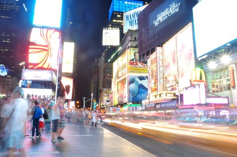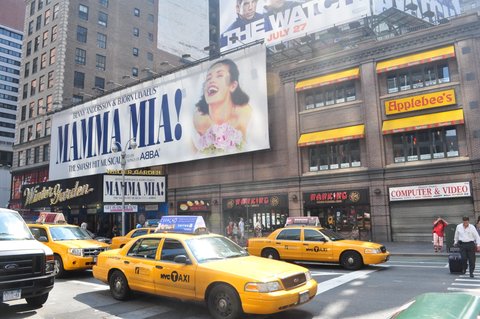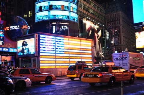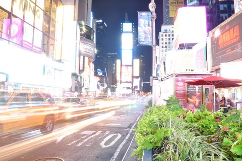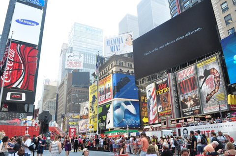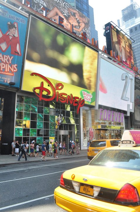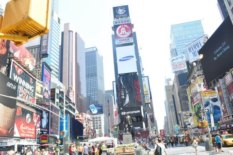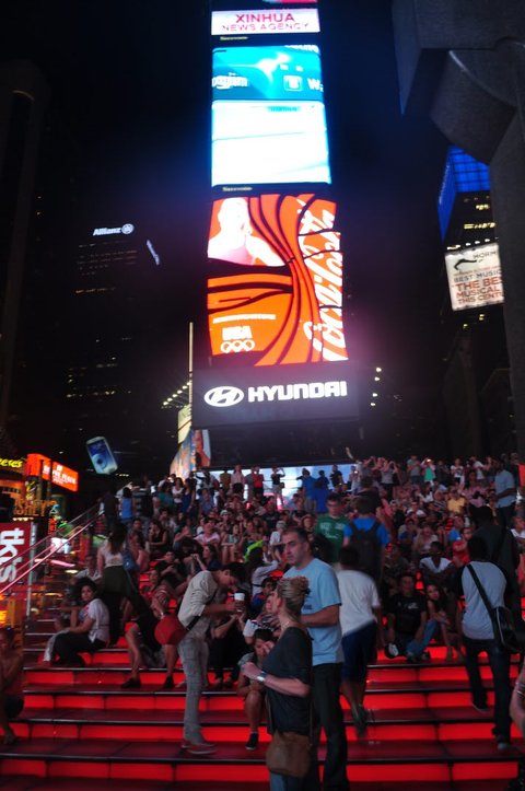 수많은 전광판, 타임스퀘어의 상징 빨강 계단, 수많은 사람들, 옐로우 캡, 고층빌딩, 제일 뉴욕스럽고 언제나 들뜨게 하는 장소였음.