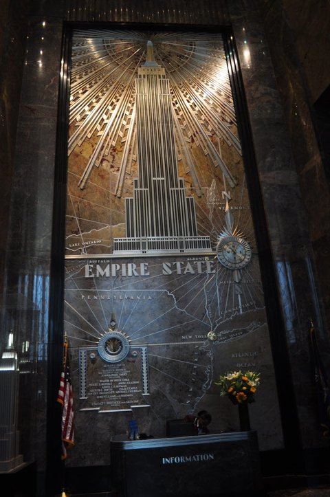 전망대에 올라가기 위해 실내로 들어가니 저렇게 엠파이어스테이트 빌딩을 판화(?)처럼 해 놓기도 하고 표를 사고 올라가는 길에는 빌딩의 역사나 공사과정등에 대한 설명도 있네요.