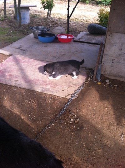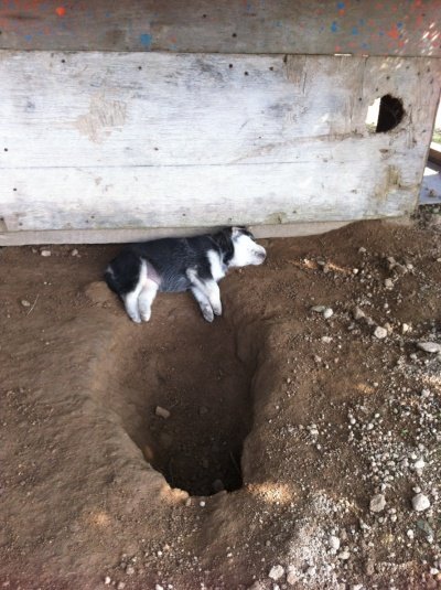 개집위에..햇빛차단망을 설치해줬음에도... 집옆에 땅을 미친듯이 파기시작했음.