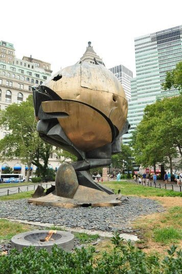 이 조각은 세계평화를 상징며 원래 WTC Plaza에 놓여있었는데 지난 2001년 9.11 테러로 World Trade Center가 무너지면서 파손되었고 2002년에 배터리파크로 옮겨졌다고 합니다.