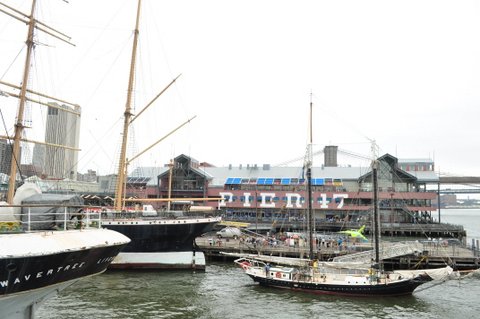 Pier 17은 부두 건물을 이용해 만든 건물로 안에는 음식을파는 곳, 패션잡화 등을 파는 곳이 있어요.