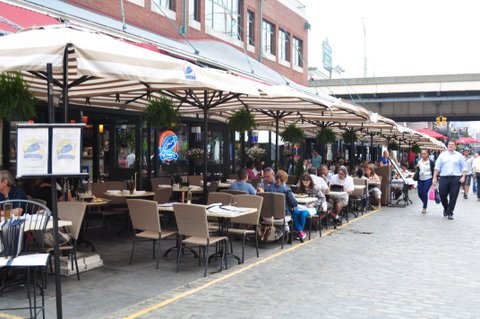 Pier17을 나와 WTC가 있는 서쪽으로 걸어가다 보니 이렇게 노천 카페와 식당들이 보이네요.