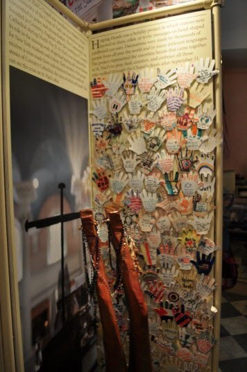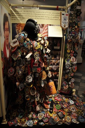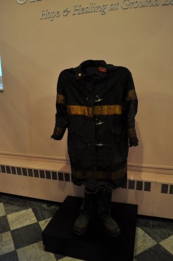 안에는 9.11 테러와 관련된 것들이 있었어요. 희생자들을 기리는 손바닥편지, 여기저기서 기증한 패치(?),당시 구조대의 옷 등이 있더라구요.