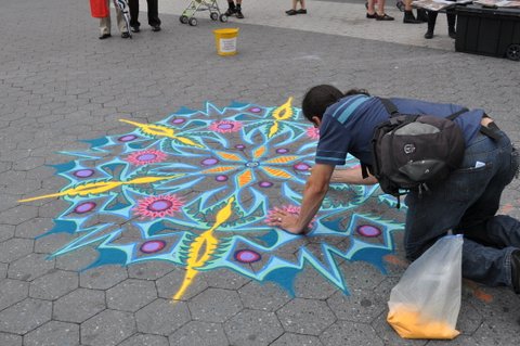이렇게 바닥에 그림을 그려 놓는 분들도 계셨어요.