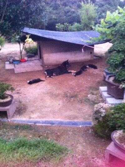 깜순여사 배불려놓은 바람에 집 뒷편으로 퇴출..