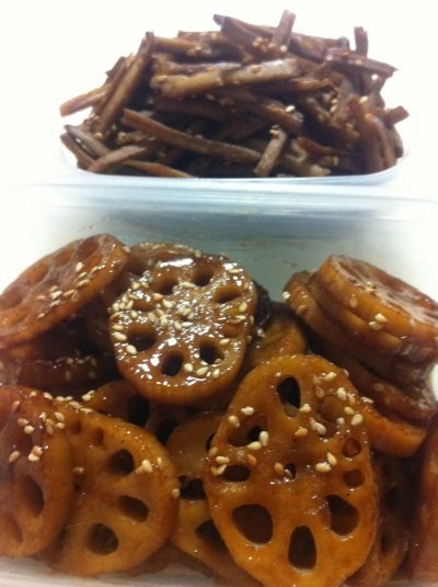 넣고 주먹밥 만들어 넣고 한쪽에는 오이지무침으로~