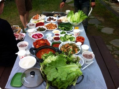 펜션에서 젊은 사람들이 저래 상차리고 먹으니 다 와서 구경...ㅎ