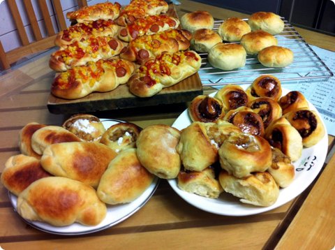 가족들간식으로 만든 빵들! 소시지빵.애플롤.시나몬롤.버터롤.