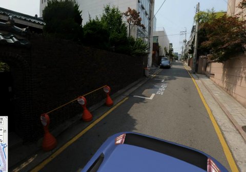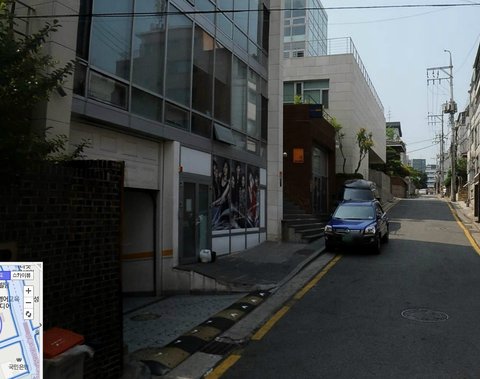 맨홀위치에서 싱크를 맞춰보면 주차된 차종 및 주차라인 열린창문 나무그림자