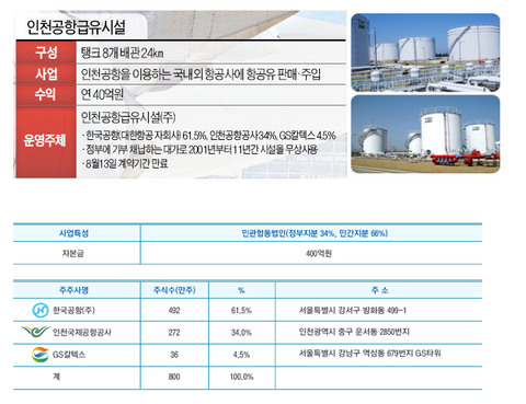 이것만 봐서는 인천공항 급유시설인 민간인 회사 같지만, 지난 1995년 '건설교통부 항공기급유시설 민간투자사업 고시'를 통해 설립된 민자유치 공항시설 사업입니다.